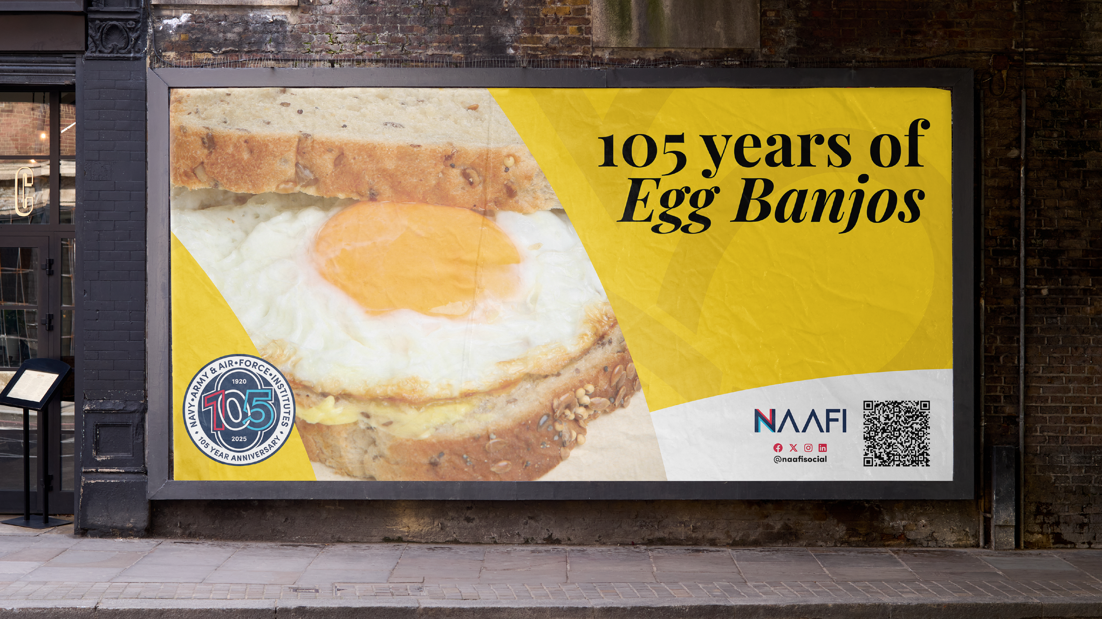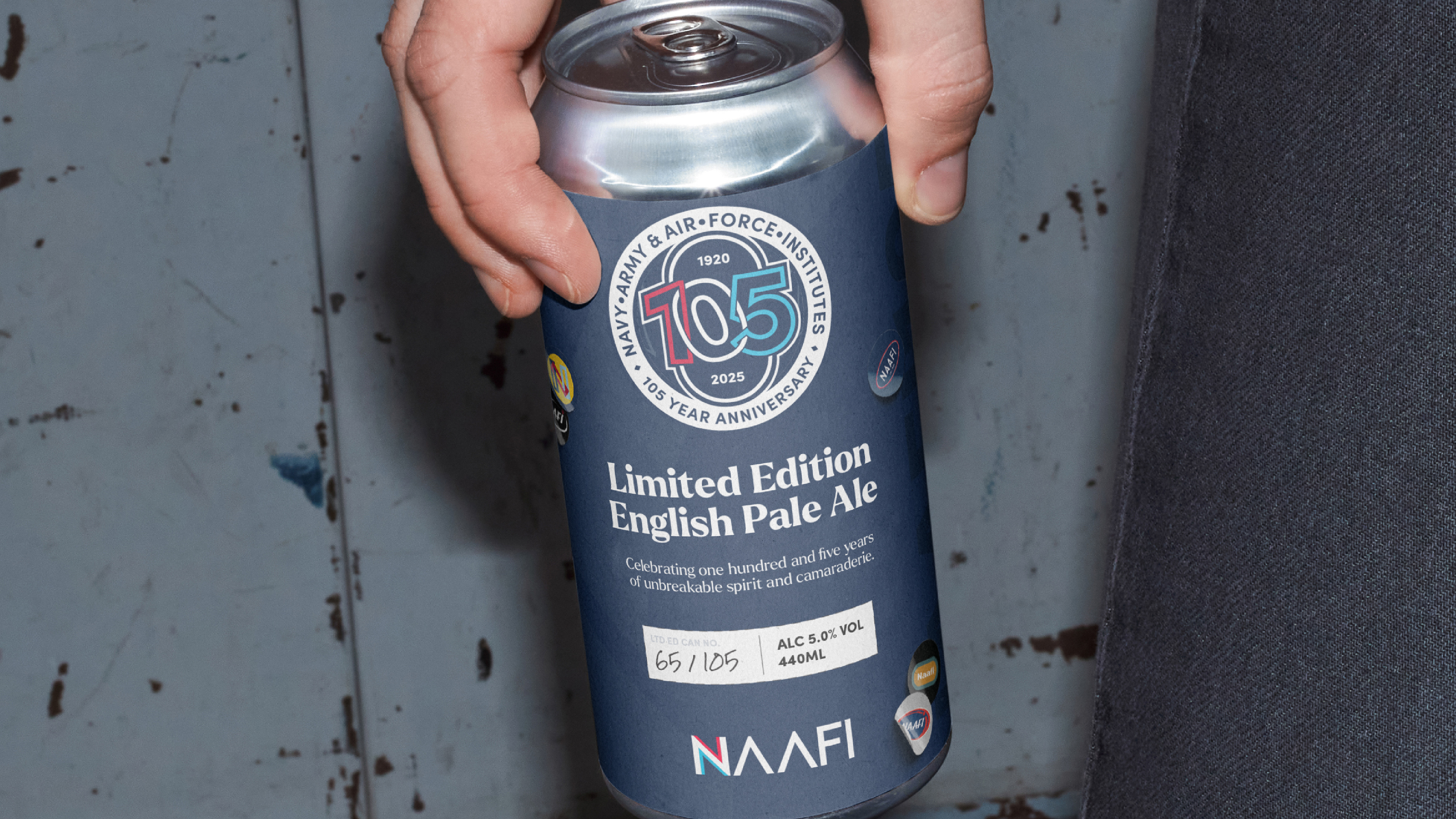 To commemorate the 105th anniversary of NAAFI, I developed a bespoke brand identity that honours over a century of dedication to the UK Armed Forces. The centrepiece of the project is a dynamic crest that bridges the gap between heritage and modernity. Taking inspiration from the iconic circular crest used between 1960 and 1989, I integrated an 'unbreakable link' motif within the '105' typography - symbolising the enduring partnership between the organisation and the personnel they serve worldwide.